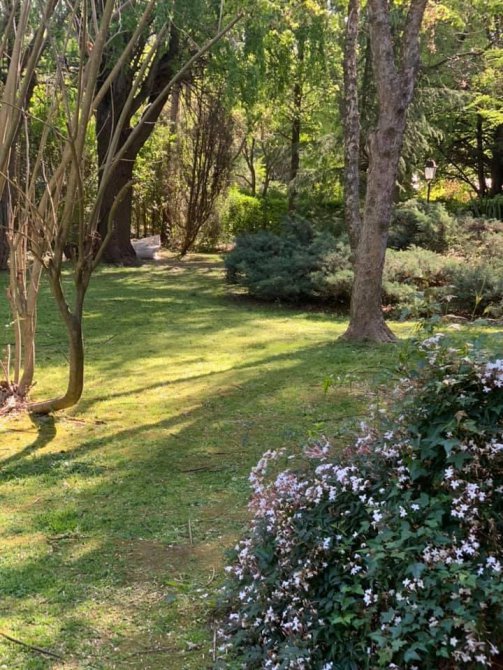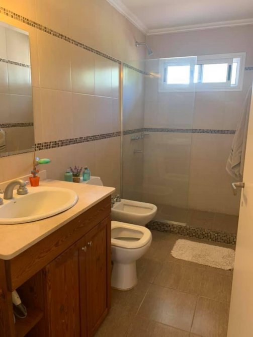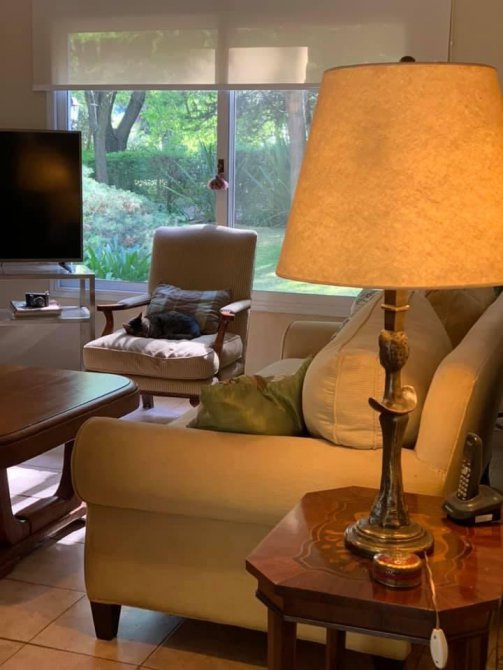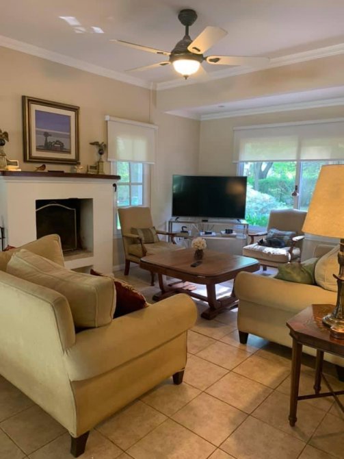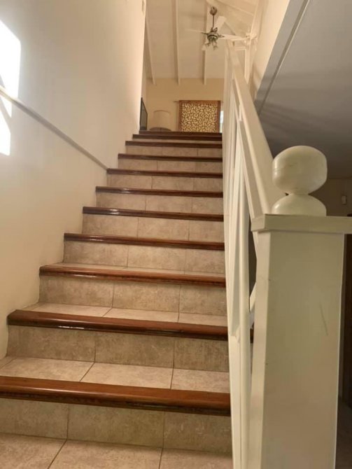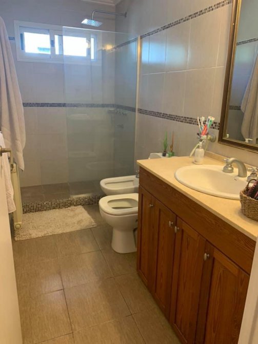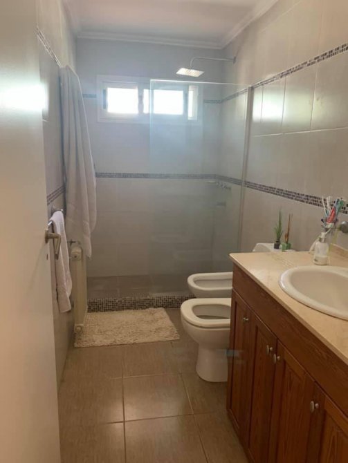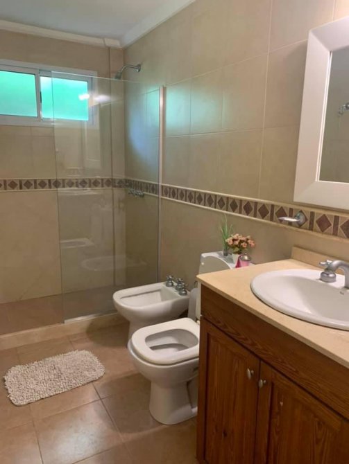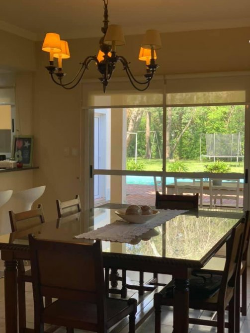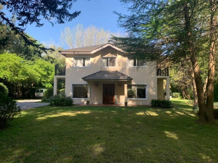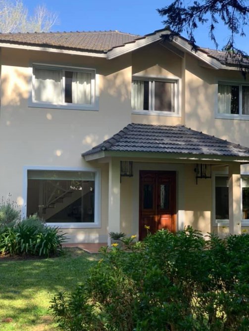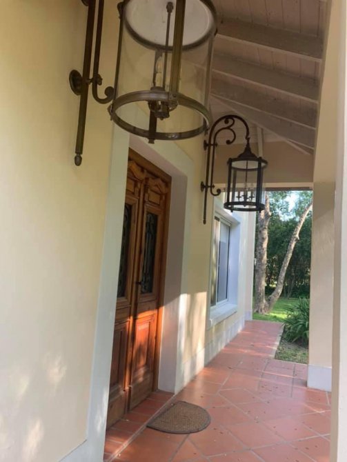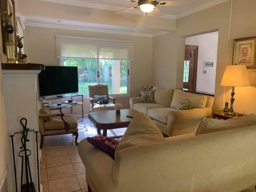 En su exterior se aprecia un amplio parque lleno de plantas frondosas, arbustos variados, números riegos. Piscina con área de solárium, galpón y baño, una galería abierta con parrilla. En su interior se encuentra el recibidor, la sala de estar, comedor, cocina, lavadero, baño, escritorio. Por las escaleras se llega a la planta alta donde tenemos otra sala de estar con balcón, por otro pasillo las cuatro habitaciones y dos baños. Tres habitaciones con una magnifica vista al parque desde las terrazas.