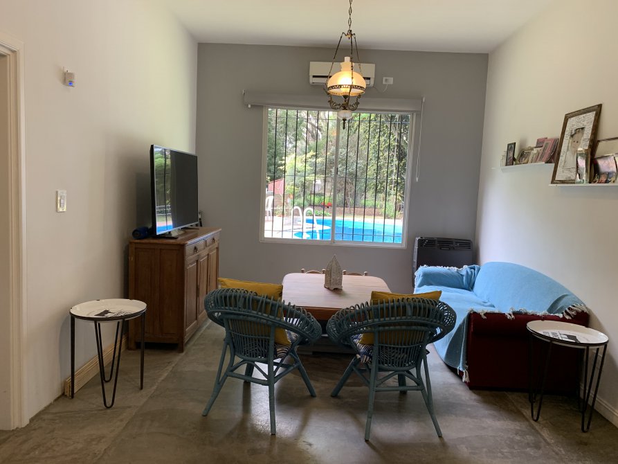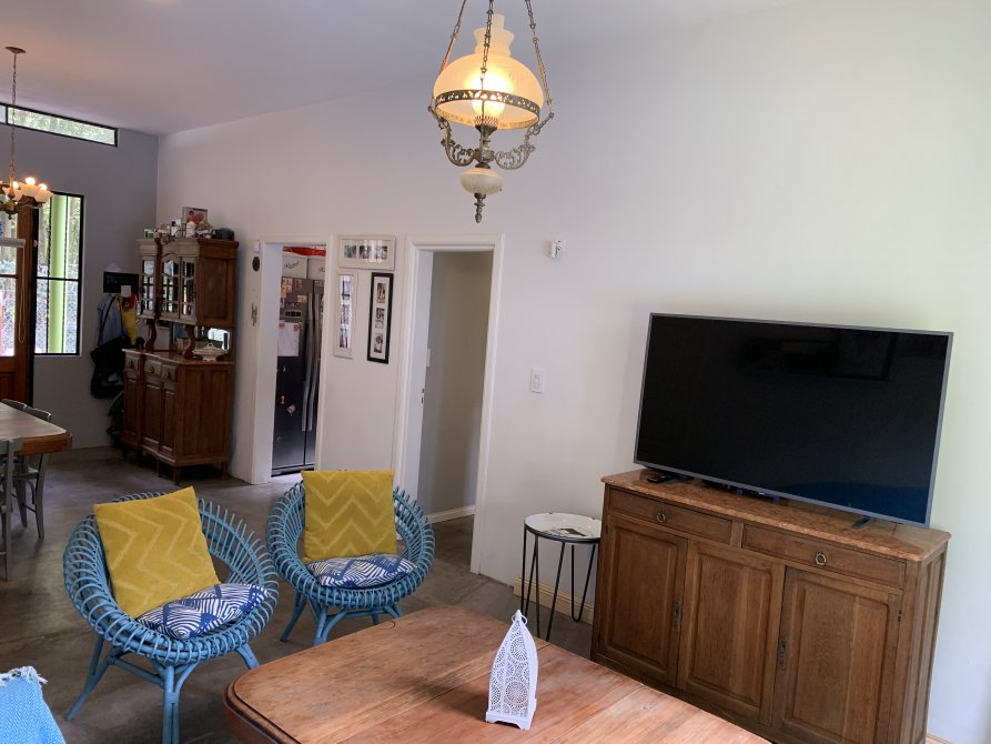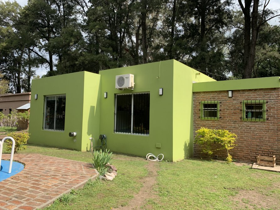 La vivienda esta conformada por tres ambientes. Todo en planta baja. A su ingreso, comedor, sala de estar, cocina, dos habitaciones y dos baños, Construcción de calidad. En el exterior tiene un jardín con variedad y cantidad de plantas, arbustos, árboles frutales y una magnifica pileta con solárium, garaje techado. Servicios, luz eléctrica, gas natural y agua corriente.