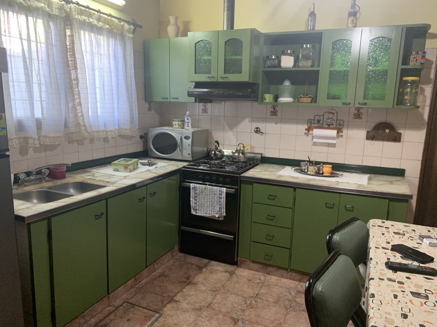 En planta baja: living, comedor, cocina, dos habitaciones, baño, lavadero, cochera cerrada con ingreso directo a la vivienda. Por escalera a planta alta: una habitación con un desván o con opción a utilizar como otro cuarto. Servicios de luz y gas natural. Parque con arbustos y hermoso quincho todo cerrado con puertas corredizas de vidrio más un galpón pequeño. Cada ambiente es único y muy confortable lo que hace que una familia de hasta cinco integrantes puedan vivir muy confortablemente. Esta casa cuenta con todos los servicios y además en algunos de sus ambientes ya queda aires acondicionados de ventana frió/calor y un calefactor de catalitico.