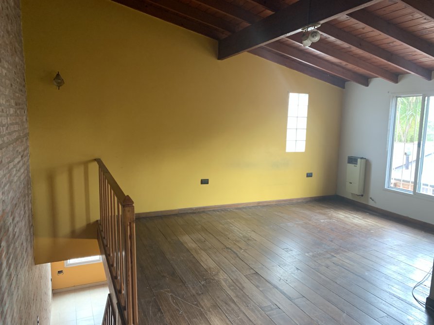 Departamento de tres ambientes: se encuentra dentro de un complejo de ocho unidades, cuenta con dos habitaciones, una en planta alta y otra en planta baja, cocina comedor con bacha y mueble bajo mesada, baño completo, entrada para auto, parrilla, conexiones para lavarropas y aire acondicionado. Ambientes calefaccionados tiro balanceado. No trae cocina. se permiten mascotas pequeñas, tamaño caniche.