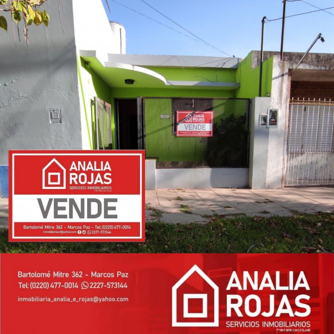 Excelente oportunidad! Vivienda de muy buenas dimensiones y excelente ubicación! Pleno centro de marcos paz. Cocina comedor baño dos habitaciones patio entrada con cerramiento de rejas. Todos los servicios. Contacto Servicios Inmobiliarios Analia Rojas 2228573144/4770014