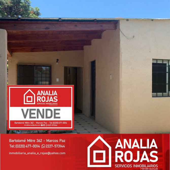 ubicada en calle el Lazo 759. A pocas cuadras de la ruta 40. Cuenta con amplio parque, cocina comedor, baño, una habitaciones. Luz y gas envasado. Sobre asfalto. Ambientes muy amplios. Muy buena construcción. Con escritura. Para más info Servicios inmobiliarios Analia Rojas 222757344