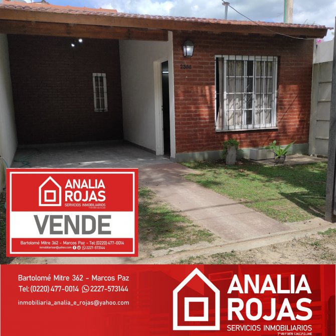 Departamento en venta en Marcos Paz. Ubicado sobre calle Pueyrredón 2388 entre Rondeau y Alsina, a metros de Av. Libertad y muy pocas cuadras del centro de la ciudad. Cuenta con los servicios básicos luz, gas envasado, agua corriente y pozo. Frente de 6,3 por 15 de largo. Sup Cub 50 Sup total 93m2. Listo para escriturar. En el frente cuenta con cerramiento de rejas en el frente y al lateral placas de hormigón. Dentro la vivienda está compuesta de una cocina comedor, una habitación, un baño, un lavadero y un patio trasero pequeño. Todo el fondo cerrado también con placas de hormigón. Muy buena disposición posee cada ambiente.