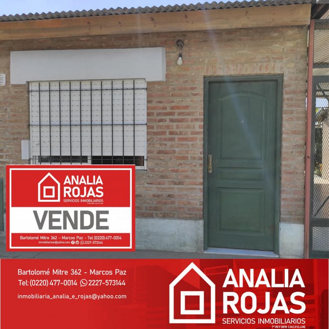 Departamento a la venta. USD 35.000 Ubicado en Astarita 226, Marcos Paz. A pasos de la ruta 40. Inmueble de dos ambientes. Cocina comedor. Baño. Una habitación. Patio. Lavadero y cuarto multiuso. Espacios muy funcionales. Sobre asfalto. Todos los servicios. Listo para escriturar. Para más info Servicios Inmobiliarios Analia Rojas 2227573144