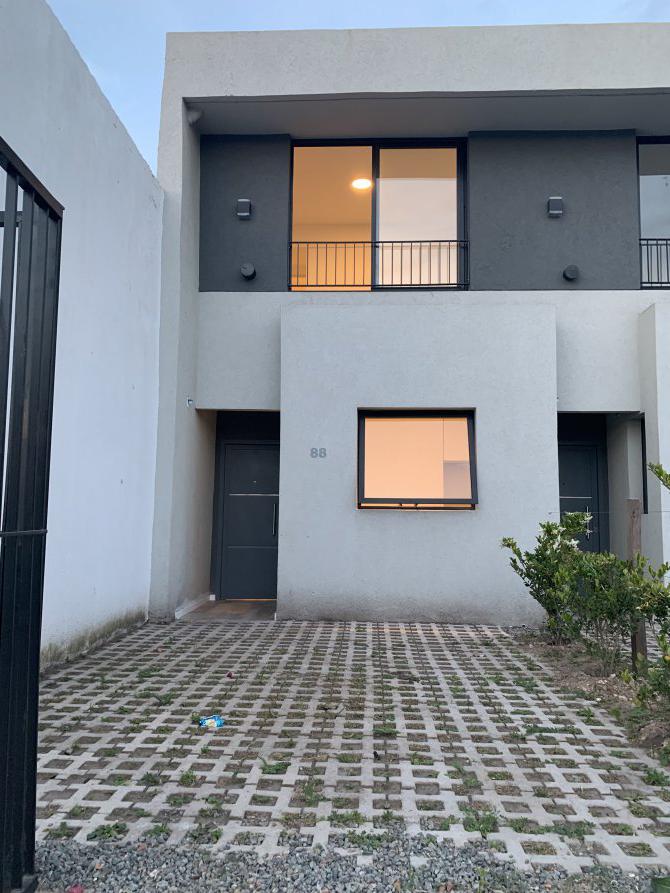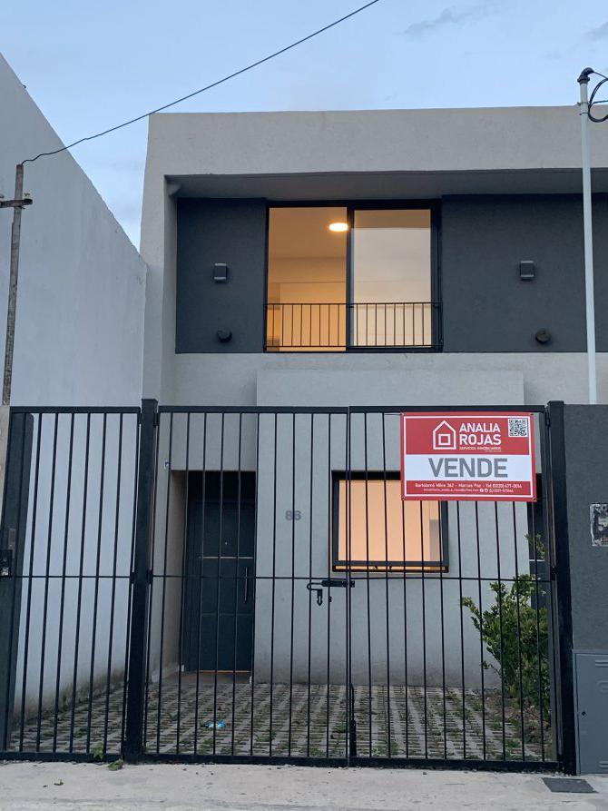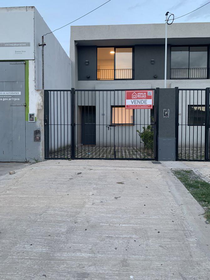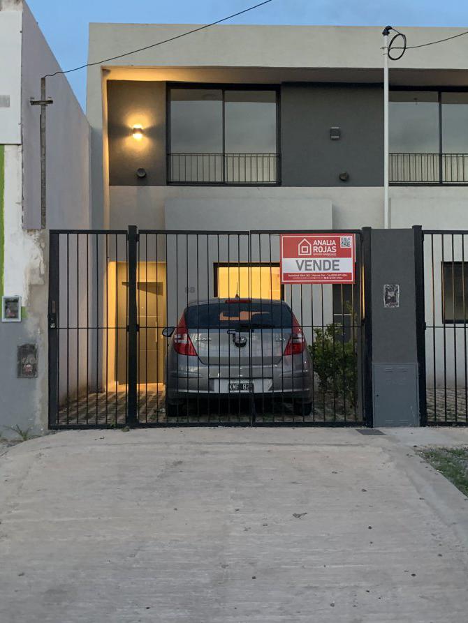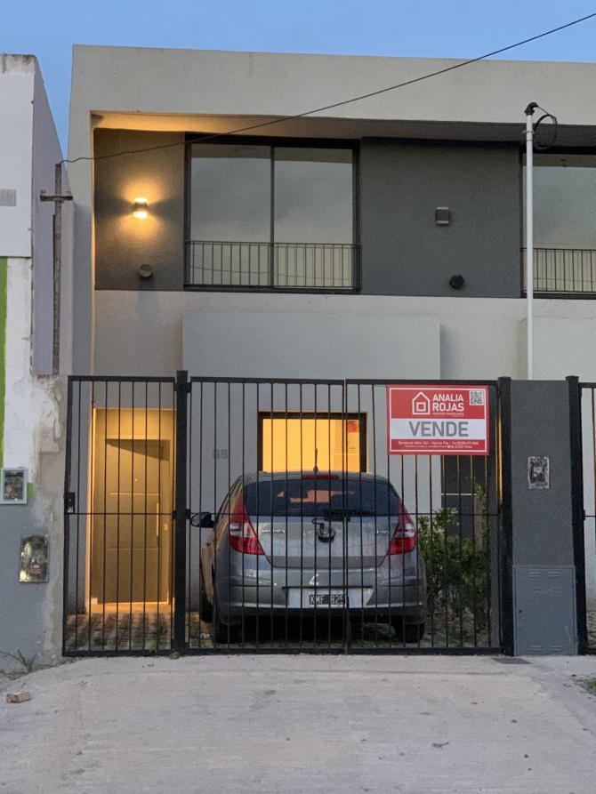 Su frente posee rejas , con acceso peatonal y vehicular con espacio para el guardado de un vehículo al descubierto.