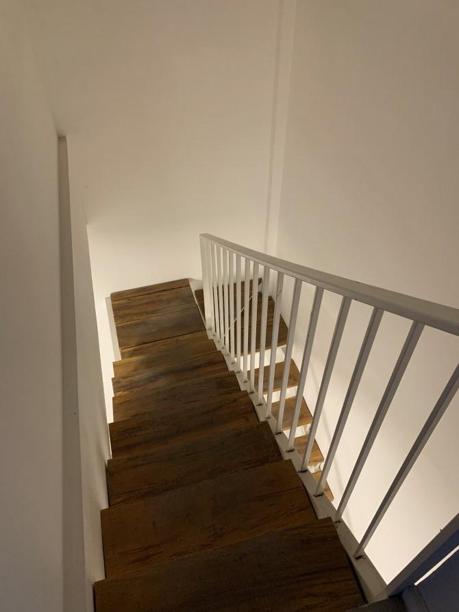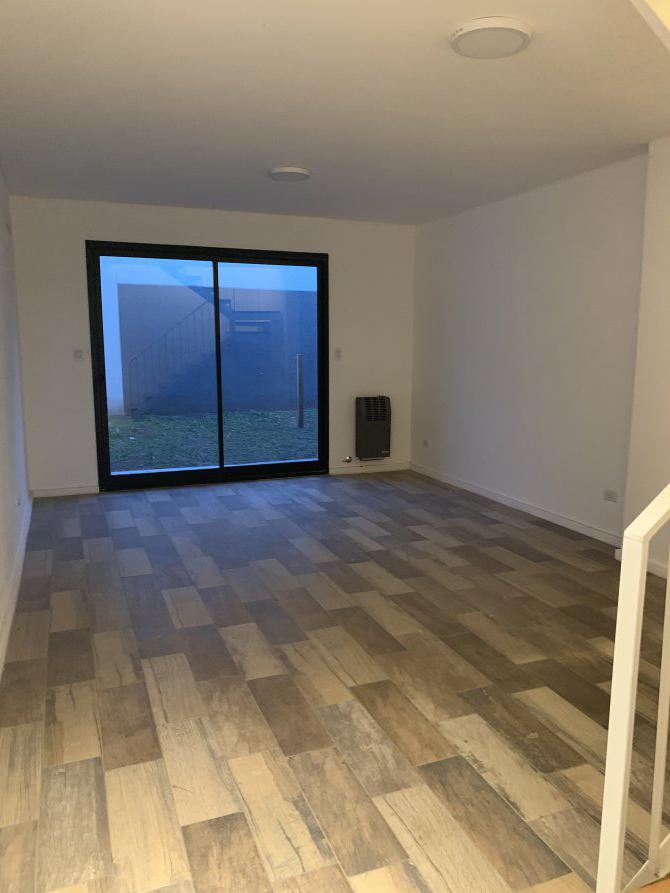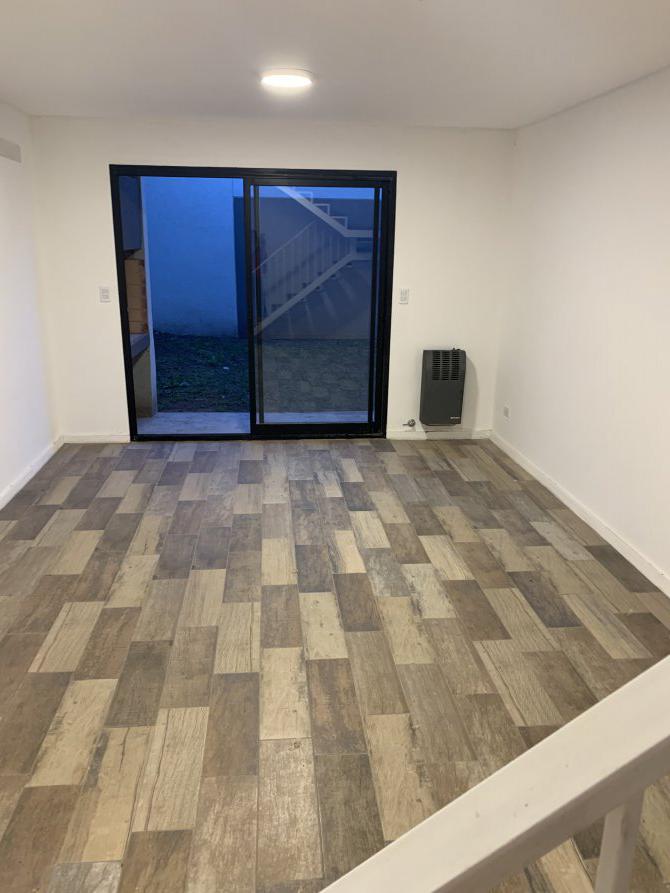 Distribuido en dos plantas, cuenta en planta baja cocina con termo tanque, mesada y bajo mesada vista al frente, toilette, living- comedor con vista a su contra frente con salida al mismo por puerta balcón, espacio verde con parrilla.