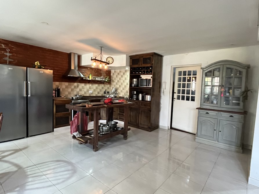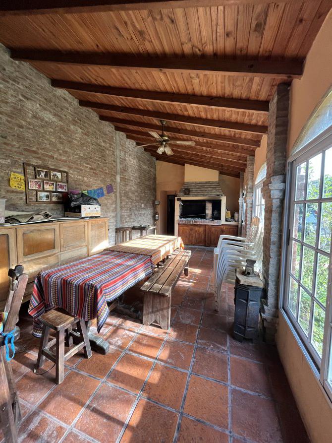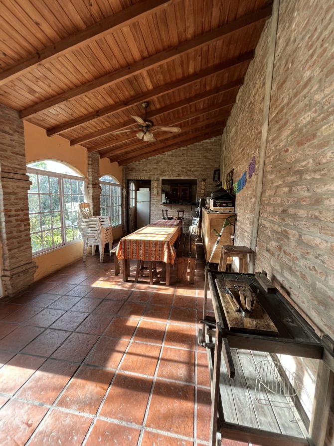 en el exterior se encuentra un quincho de dos ambientes con todos los artefactos y comodidades muy bien planteados a la comodidad y funcionalidad del mismo, se puede ingresar a la vivienda y al quincho, tanto por el interior de la casa y por el lado izquierdo de la misma.