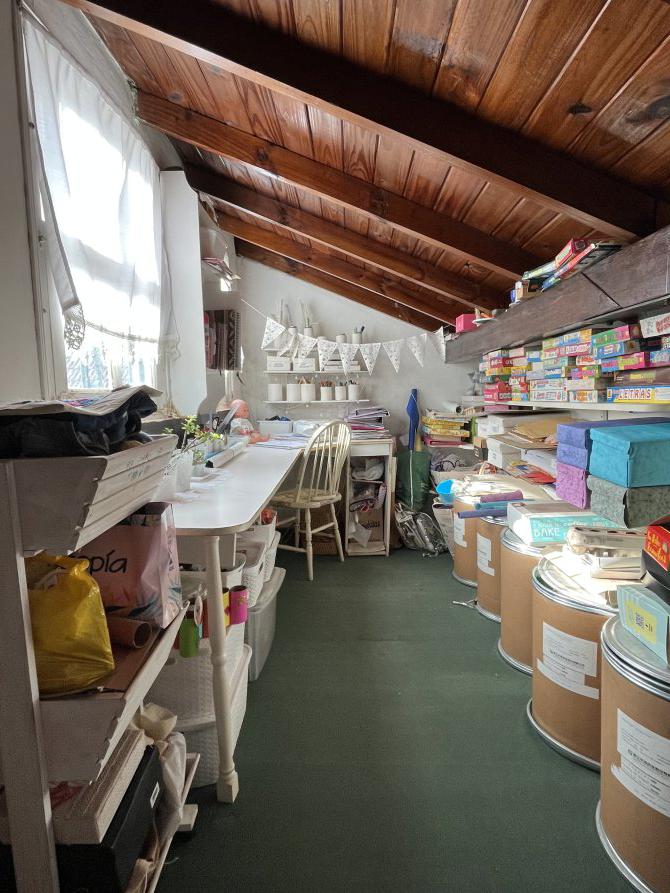 en planta alta, por escaleras, una habitación, un playroom, baño completo y biblioteca.
