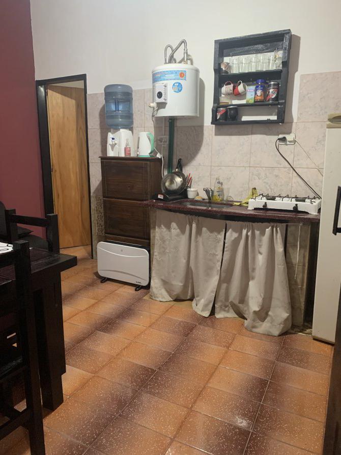 En la parte del fondo se encuentra el departamento de dos ambientes, con entrada independiente, posee una habitación, cocina comedor, baño, lavadero y patio, con entrada independiente también.