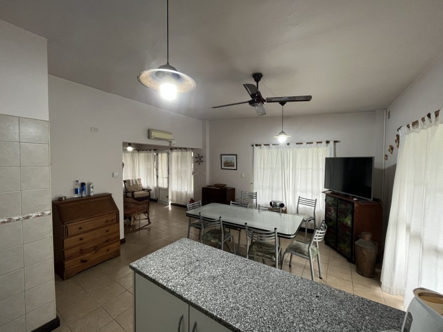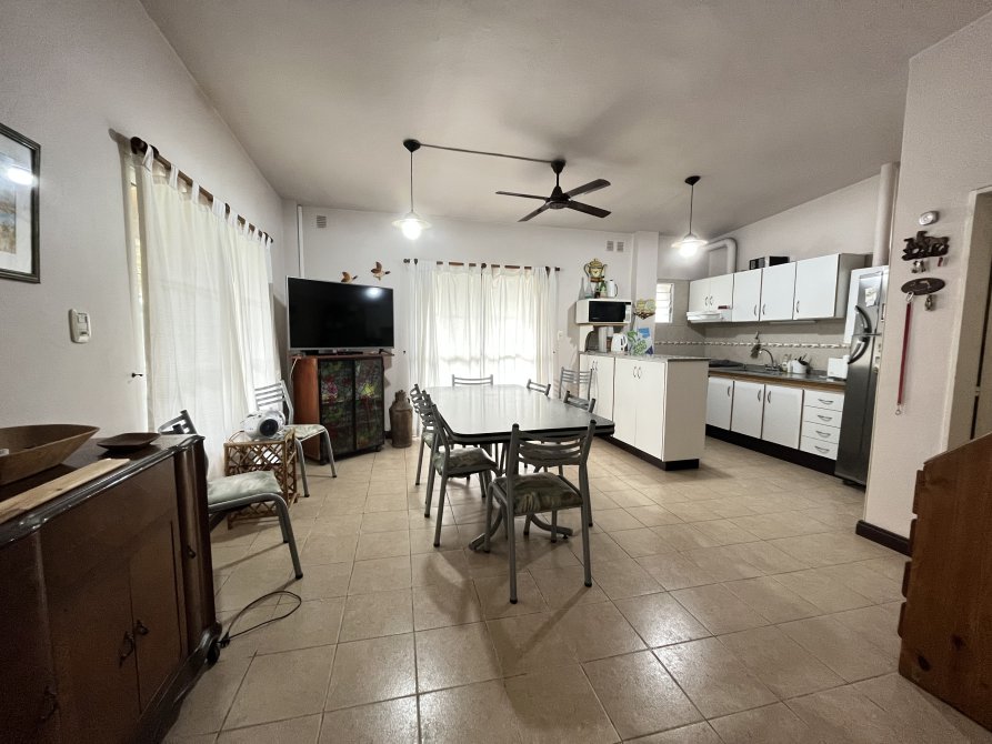 Por un lado encontramos la casa principal de cuatro ambientes, recibidor, comedor, cocina con división de una barra, por un pasillo se llega a las tres habitaciones y un baño.