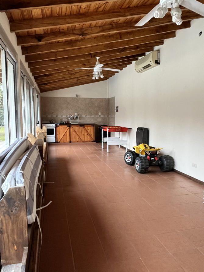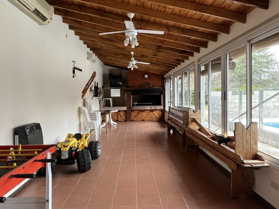 El quincho posee dentro muy buen espacio con cocina, muebles, calefacción, aires acondicionados y parrilla.