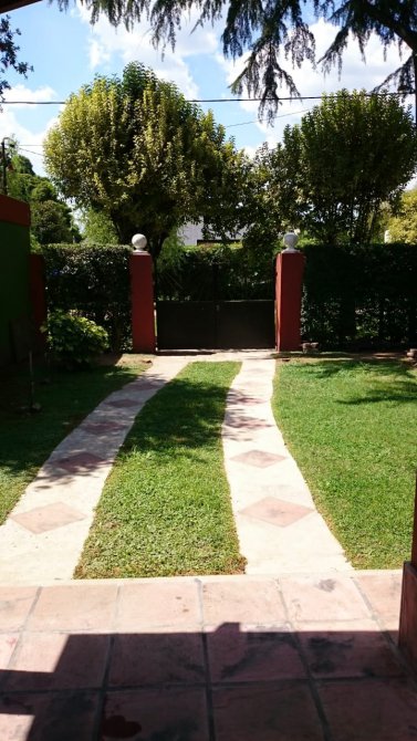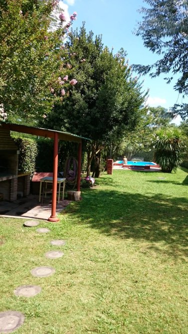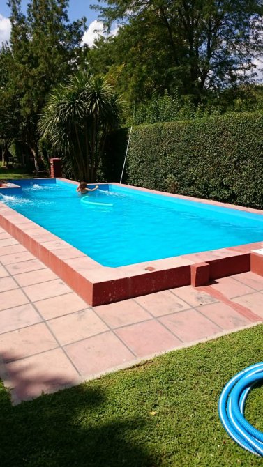 galeria semi cubierta, en su interior posee una cocina comedor amplio. Dos habitaciones muy funcionales y grandes, un baño con todos sus accesorios y artefactos, galería semi cubierta, gran parque con parrilla y una gran pileta de hormigón de 36M2., automatizada, bomba de agua y perforación. Agua corriente, Luz, Gas Natural.