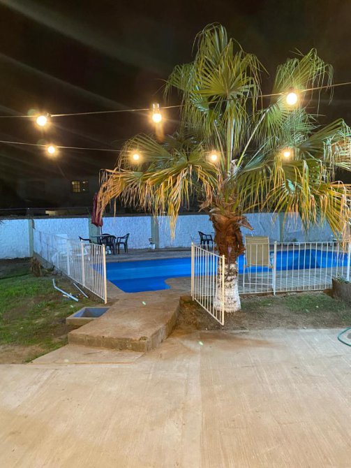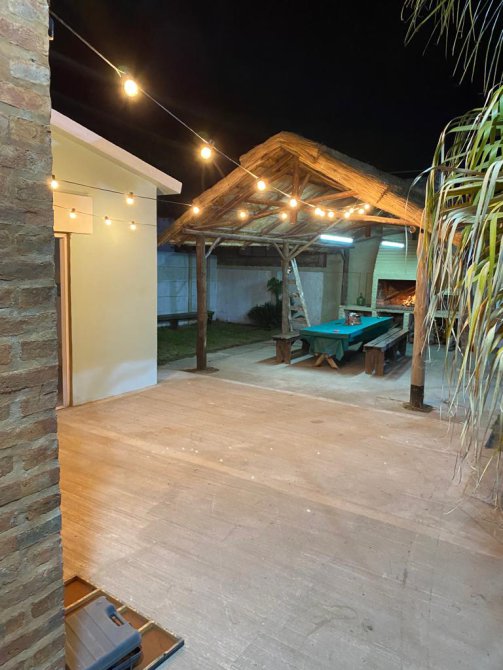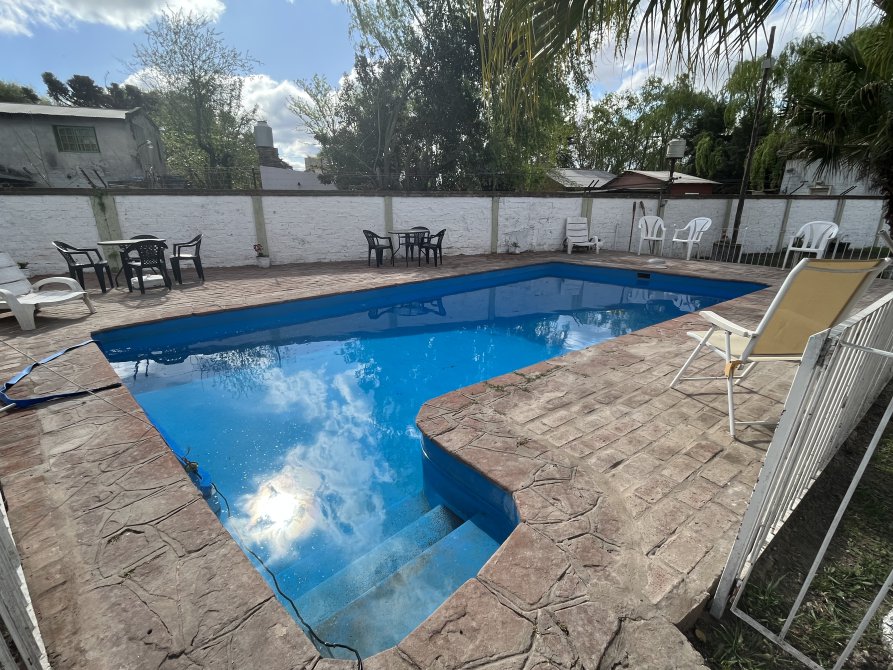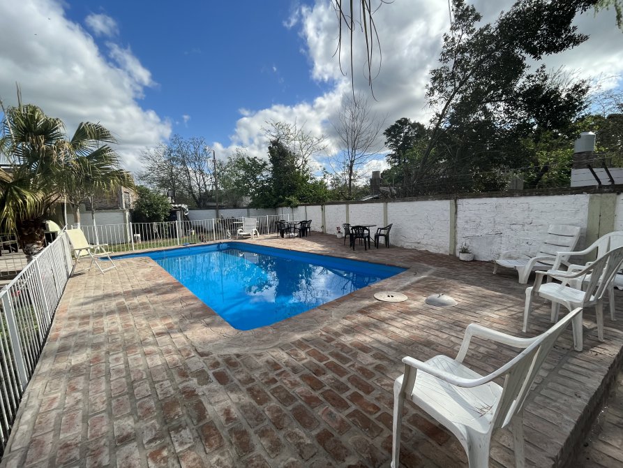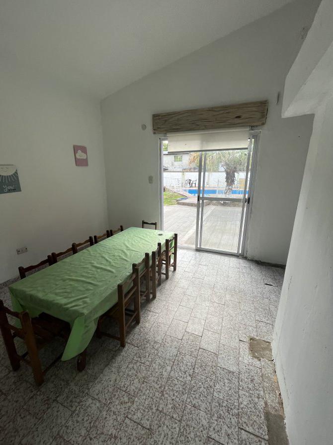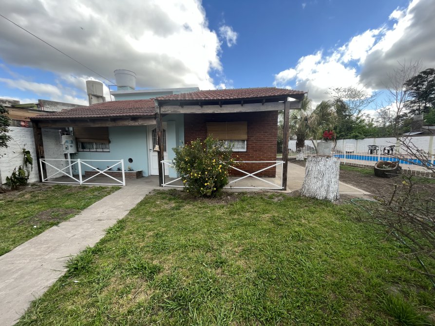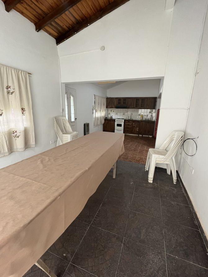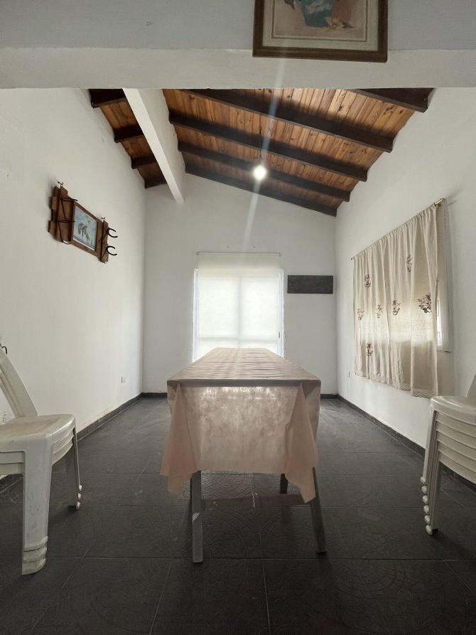 La casa tiene a su ingreso una cocina comedor muy amplia, con otro ambiente al lado utilizado en este momento como un comedor más, cuenta con una baño, una baulera. Posee techos abobedados con buen aprovechamiento de espacios. En el exterior tiene muy buena disposición de parque, quincho y pileta con rejas. Actualmente se está utilizando como espacio de alquiler por día.