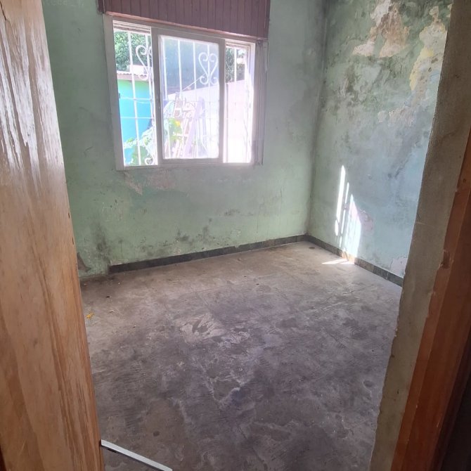 Es de tres ambientes, cocina, comedor, baño y dos habitaciones.