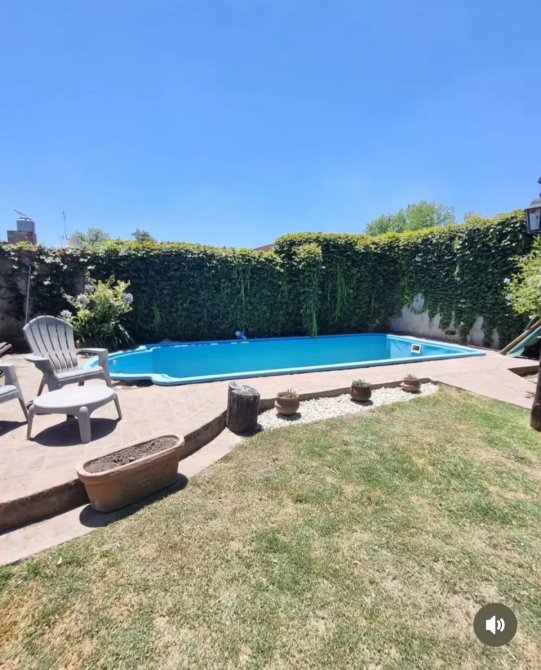 Hermoso parque y pileta en el fondo de la propiedad de 3 x 7 con 120 en la parte mas playa y 150 de profundidad en la parte mas onda.