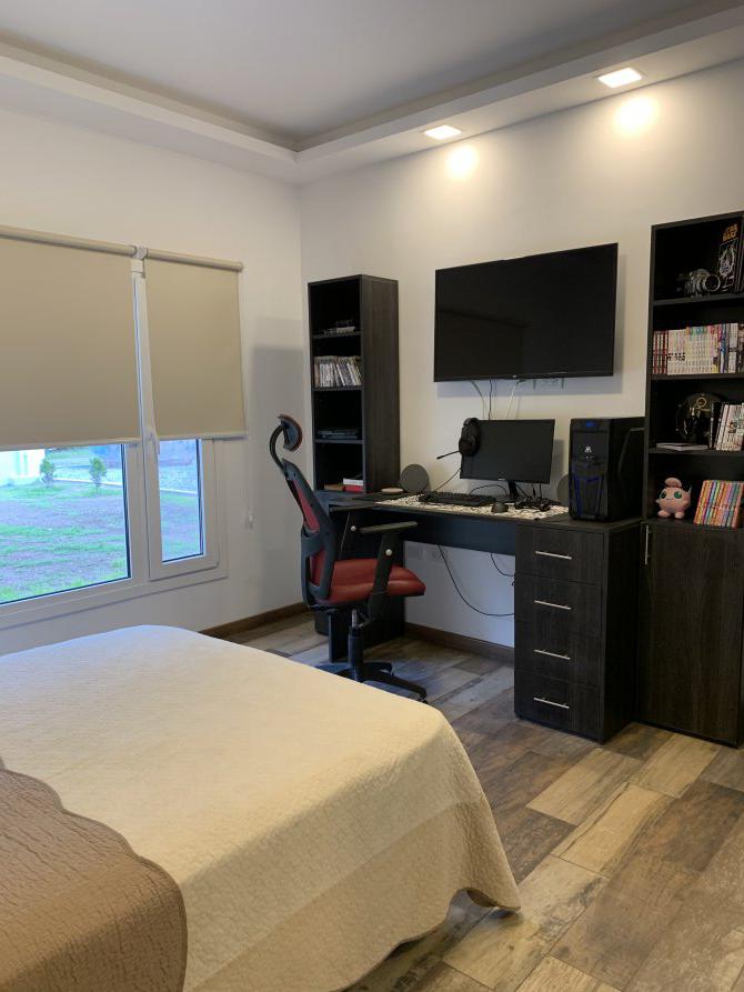 Por otro pasillo podes acceder al primer baño con entrada a la primera habitación, luego la segunda habitación con baño también, guardado de juguetes y vestidor. La tercera habitación es sin lugar a dudas la que te va a enamorar por su jacuzzi, amplio baño y vestidor. Al finalizar el recorrido tenemos el lavadero compuesto por más accesorios y lavarropas y con salida al exterior para la comodidad del espacio de la pileta. Todos los ambientes cuentas con radiadores y aires acondicionados. En un lateral se encuentra un hermoso quincho semi cubierto con parrilla y todas las comodidades para imaginar tener las mejores cenas o almuerzos al aire libre. Por último el parque con gran metros cuadrados y la pileta, le dan el toque mágico para pasar la mejor estadía en este maravilloso lugar.